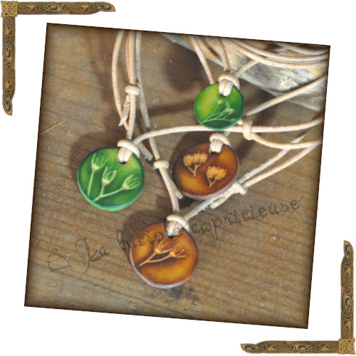Fermeture réglable en buis ou corne et lacet de cuir, ou fermoir simple en buis ou corne, en fonction des modèles.